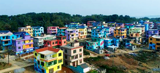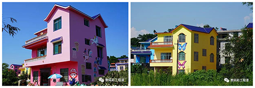 廣西富川瑤族自治縣的虎頭村,兩年多前還是一個貧困的小漁村,為幫助村民脫貧致富,政府資金扶持將其打造成為如今七彩斑斕的旅游村,而個旅游村所有的3D外墻彩繪均采用數(shù)碼彩銅墻鐵壁防水抗堿外墻漆。