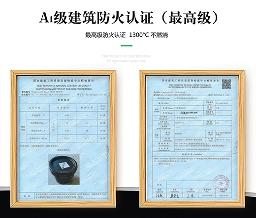 “建筑材料及制品燃燒性能分級”檢測結果為“燃燒性能A1級”