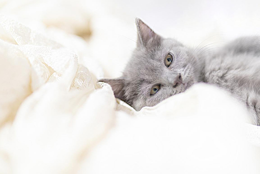 貓咪無(wú)聊地望著潔白無(wú)瑕的墻壁