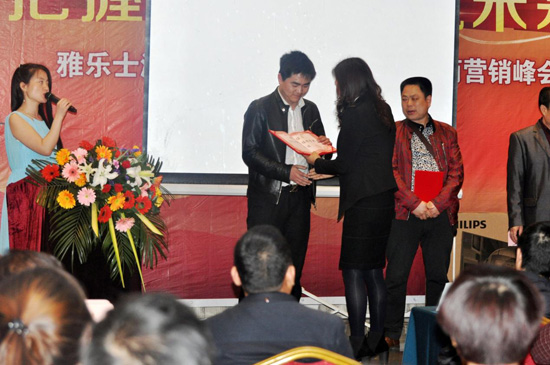 公司營(yíng)銷(xiāo)一部總監(jiān)李海英為優(yōu)秀經(jīng)銷(xiāo)商頒獎(jiǎng)