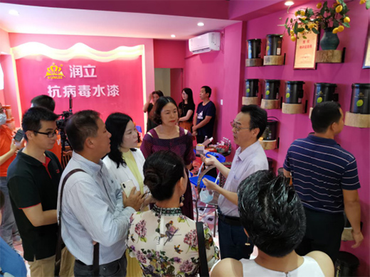 當(dāng)日上午,潤立董事長何偉強(qiáng)先生、總經(jīng)理唐瑤女士、廣東省涂料協(xié)會(huì)秘書長呂水列、廣東微生物研究所謝小保主任、廣東迪美生物技術(shù)有限公司專家以及多位媒體及客商陸續(xù)到場,共同見證了潤立漆的“高光”時(shí)刻。