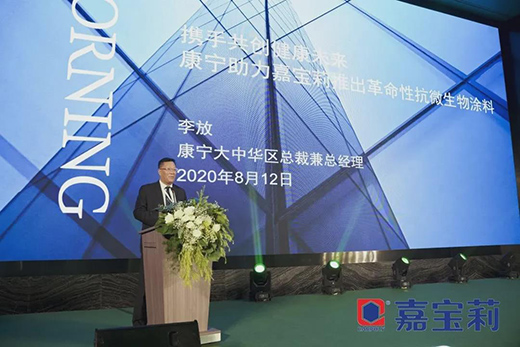 嘉寶莉全裝修產(chǎn)品事業(yè)部副總經(jīng)理兼市場部總監(jiān)施以森嘉寶莉全裝修產(chǎn)品事業(yè)部副總經(jīng)理兼市場部總監(jiān)施以森從當(dāng)下病毒、細(xì)菌對我們生活的困擾入手,分析了抗菌、抗病毒功能產(chǎn)品的行業(yè)現(xiàn)狀,并隆重介紹了中國首款應(yīng)用Corning Guardiant?技術(shù)的產(chǎn)業(yè)化抗病毒涂料產(chǎn)品。會上,他對BB氧吧抗病毒兒童墻面漆的核心競爭力、色彩及兒童漆發(fā)展歷程等眾多亮點進(jìn)行了詳細(xì)闡述,并對嘉寶莉抗病毒涂料產(chǎn)品技術(shù)未來規(guī)劃方向做了展望。