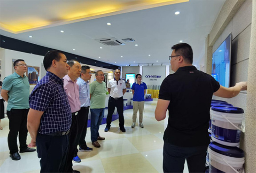 在南天涂料研發(fā)中心,技術(shù)部經(jīng)理蘇錦明就南天涂料去年自主研發(fā)的新產(chǎn)品建筑反射保溫隔熱涂料及乳膠漆耐洗刷次數(shù)等進(jìn)行現(xiàn)場演示,并對(duì)其技術(shù)創(chuàng)新、市場發(fā)展等與各位領(lǐng)導(dǎo)進(jìn)行交流探討。