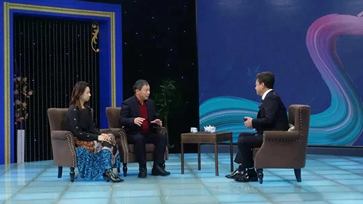 嘉寶莉集團(tuán)創(chuàng)始人仇啟明(中)、董事長仇東平(左)做客央視《逐夢年代》欄目
