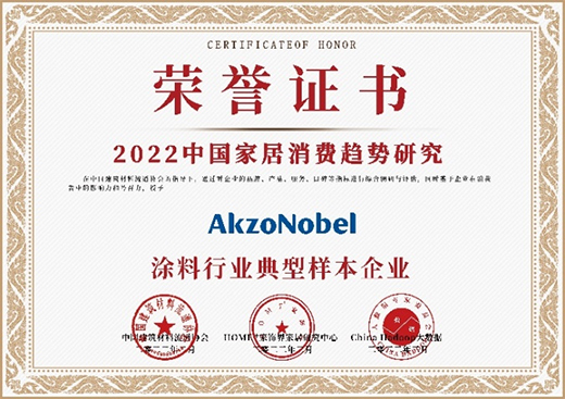 AkzoNobel榮獲“2022中國家居消費趨勢研究涂料行業(yè)樣本企業(yè)“證書