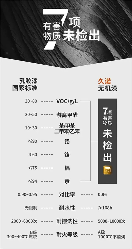 久諾在無機領域一馬當先。首先,它并沒有制造環(huán)保焦慮,而是用實踐告訴你,他們從原料、從源頭就踐行環(huán)保、無機的理念——“從原料,就環(huán)保,為時代探領更高端的涂裝選擇。”解決完源頭的取材問題,接下來就是試驗與論證了。經權威認證,久諾無機涂料產品中VOC、游離甲醛等7項有害物質未檢出。沒有浮夸的口號,更多的是與消費者認真的溝通交流,讓更多消費者記住“無機”這個詞。