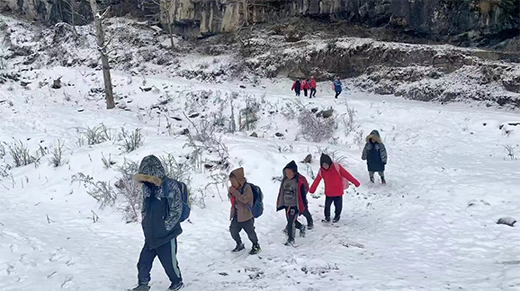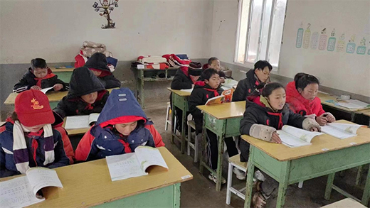 這里有漫長的雪季,孩子們需要冒著嚴(yán)寒大雪,走過漫長崎嶇的山路,在冰冷刺骨的教室里上課,沒有暖氣、暖爐……