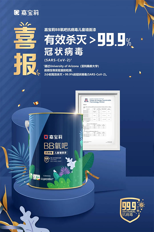 早在2019年,我們已經(jīng)聽(tīng)聞嘉寶莉抗病毒涂料專(zhuān)項(xiàng)研發(fā)團(tuán)隊(duì),投入重金來(lái)對(duì)Corning Guardiant? 技術(shù)抗病毒涂料產(chǎn)進(jìn)行研發(fā),而Corning Guardiant?作為抗微生物添加劑在美國(guó)環(huán)境保護(hù)署(美國(guó)環(huán)保署)注冊(cè),是一種抗微生物銅離子技術(shù),密封了銅最活躍的抗微生物狀態(tài),并能控制銅離子的釋放,殺死病毒和細(xì)菌。需要知道的是,銅是人體所必需的微量元素之一,也是制造各種日常生活器具的主要原料之一,如在產(chǎn)品配方設(shè)計(jì)上使用銅離子為活性成分,從源頭上就可以減少非安全原料對(duì)人體的傷害,打造更安心的生活環(huán)境。在結(jié)合該項(xiàng)頂尖技術(shù)的同時(shí),嘉寶莉旗下“BB氧吧抗病毒兒童墻面漆”產(chǎn)品采用凈味無(wú)添加配方來(lái)確保揮發(fā)性有機(jī)化合物等有害物質(zhì)釋放量達(dá)到極低水平,氣味更清新。同時(shí),產(chǎn)品更通過(guò)了美國(guó)UL GREENGUARD室內(nèi)空氣質(zhì)量金級(jí)認(rèn)證、法國(guó)室內(nèi)環(huán)境空氣檢測(cè)A+標(biāo)準(zhǔn)、EN71-3歐盟玩具安全標(biāo)準(zhǔn)、兒童漆國(guó)家標(biāo)準(zhǔn)等權(quán)威認(rèn)證。
