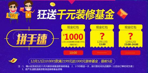 打開這次雙12,最吸引小編的就是狂送千元裝修基金了。關(guān)注了美涂士雙11的朋友們一定知道,在今年的雙11活動中,美涂士也帶來了送千元裝修基金的特別活動,延續(xù)雙11,作為雙12的大優(yōu)惠,美涂士還是繼續(xù)放出五份千元的裝修基金,只要您是12月12日當天上午十點付滿2199元的前五名,就有機會搶到這份沉甸甸的紅包。當然,這五份的千元裝修基金沒有搶到,也不要灰心,因為美涂士還跟大家?guī)砹藘煞N神秘紅包,具體就要密切關(guān)注雙12當天美涂士的動向啦。