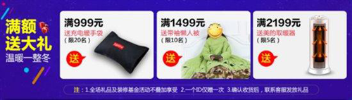 寒冬臘月,想必大家的心情跟小編一樣,想要過一個暖暖的冬天,尤其是南方的朋友們,回了家還要穿著厚重的衣物很不方便。美涂士來實現(xiàn)大家的愿望,為大家?guī)頋M額送大禮,溫暖一整冬的送禮品活動。凡購滿999元、1499元、2199元,都有機會獲得溫暖裝備:充電暖手袋、帶袖懶人被、美的取暖器。
