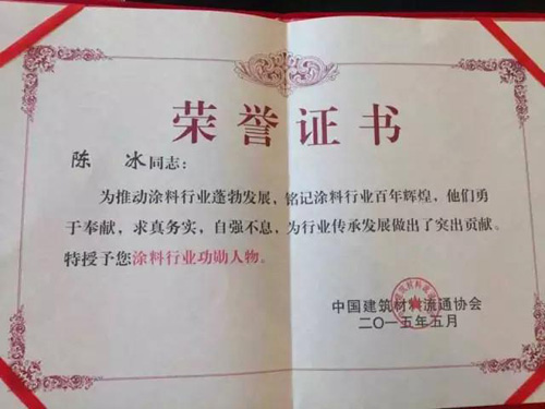 陳冰董事長榮獲“涂料行業(yè)功勛人物”