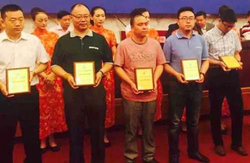 經(jīng)典漆市場部經(jīng)理湯孝波作為公司代表上臺領(lǐng)獎(右二)