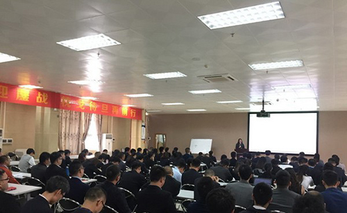 金雞報曉喜迎巔峰對決,開門大紅奪冠舍我其誰!1月5日,嘉寶莉家裝漆事業(yè)部在十樓召開誓師動員大會,隆重拉開了2017年嘉寶莉家裝漆經銷商大會的序幕。從營銷前線趕回總部的各位銷售總監(jiān)、省區(qū)經理及市場部、品牌部、培訓部等后勤人員100多人出席會議。會議就2017年經銷商會議的接待、交通、住宿、餐飲及人員分工等工作進行了細致周密的安排,家裝漆事業(yè)部總經理廖德舞在誓師大會上作重要講話,吹響了“學習·行動”的號角。他要求全體員工以飽滿的精神、熱情的態(tài)度和細致的工作各司其職,確保此次家裝漆經銷商大會的圓滿召開。