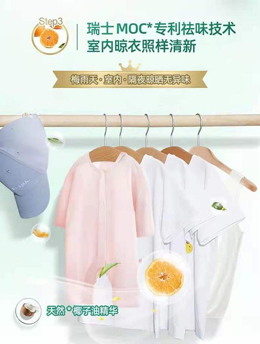 除了優(yōu)秀的清潔能力之外,這款除菌除螨除味親膚洗衣液還有著獨(dú)家的去味黑科技。我們常常因?yàn)樵诿酚晏?,陰天晾曬衣物,而?dǎo)致衣物上產(chǎn)生難聞的異味,使用這款除菌除螨除味親膚洗衣液就能輕松解決這個(gè)問題。這是因?yàn)檫@款洗衣液采用了來自瑞士的MOC專利祛味技術(shù),即使是在梅雨天或者室內(nèi)晾曬,也能讓每件衣物無懼晾曬環(huán)境,隨時(shí)保持清新自然的松木柑橘香味。