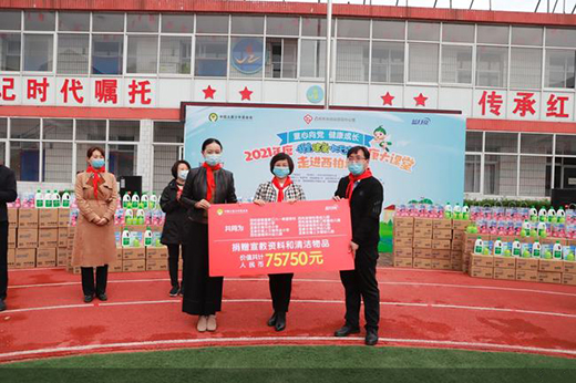 此次走進西柏坡,項目為中國工農(nóng)紅軍西柏坡八一紅軍小學(xué)、西柏坡鎮(zhèn)南莊幼兒園、孟家莊鎮(zhèn)上文都完全小學(xué)等10所小學(xué)、幼兒園捐贈了"健康小天使大禮包",包括健康知識繪本、健康跳棋、宣教知識展板和藍月亮果泡多多兒童洗手液、84消毒液等清潔物品。