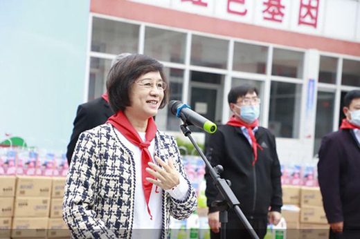 藍月亮副總經(jīng)理徐玉玲為孩子們送上健康禮物
