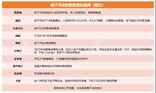 僅在2021年下半年,就有觀夏、聞獻、薇諾娜、小奧汀、橘朵等品牌,在線下開設直營店,而選擇入駐美妝集合店的新銳品牌則多不勝數(shù)。