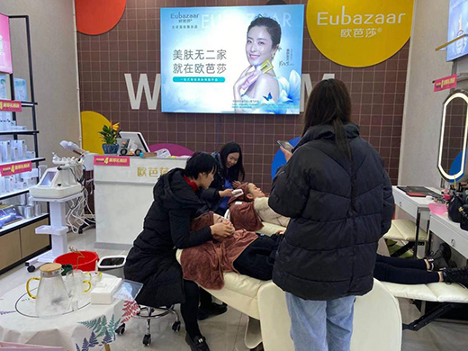 銷(xiāo)售層面上。歐芭莎一手抓服務(wù),一手抓渠道。首先,歐芭莎建立了行業(yè)第—個(gè)美妝生活館,提供“一人一方,量膚定制”服務(wù),每位到店的消費(fèi)者,購(gòu)買(mǎi)產(chǎn)品前都要經(jīng)過(guò)高端儀器檢測(cè),然后導(dǎo)購(gòu)根據(jù)各項(xiàng)指標(biāo)數(shù)據(jù)進(jìn)行產(chǎn)品推薦,確保消費(fèi)者買(mǎi)到適合自己膚質(zhì)且能針對(duì)性解決肌膚問(wèn)題的產(chǎn)品。