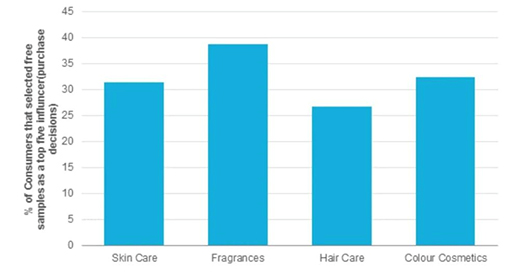 △ 咨詢公司歐瑞國(guó)際在 2015 年《關(guān)于免費(fèi)小樣對(duì)購(gòu)買決策的影響》調(diào)查中發(fā)現(xiàn),免費(fèi)樣品是消費(fèi)者購(gòu)買美妝產(chǎn)品的第四大影響因素,前三位分別為經(jīng)驗(yàn)、朋友和家人的建議以及價(jià)格。其中,超過 30% 的消費(fèi)者認(rèn)為認(rèn)為免費(fèi)小樣是影響他們購(gòu)買護(hù)膚品的五大因素之一。