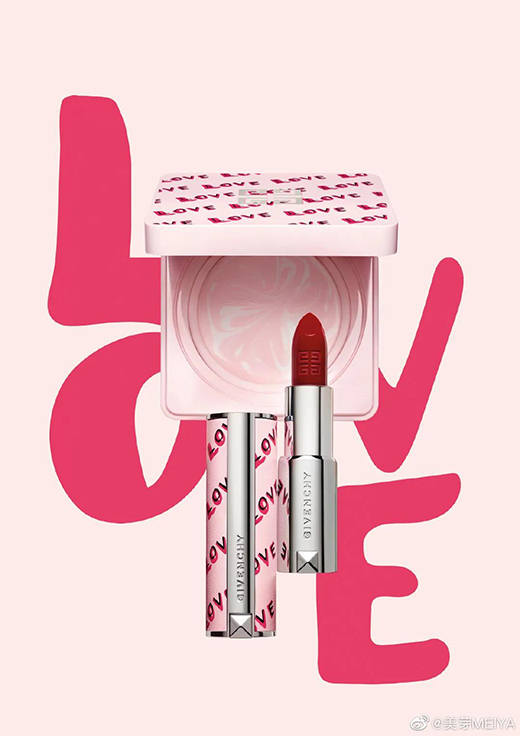 經(jīng)典小羊皮口紅,為七夕定制專屬包裝,也是很多品牌在節(jié)日中慣用的方式。紀(jì)梵希粉色羊皮管配玫瑰紅love印花,濃重的節(jié)日氛圍感到位,也能成為商家鼓吹,粉絲熱捧的單品。