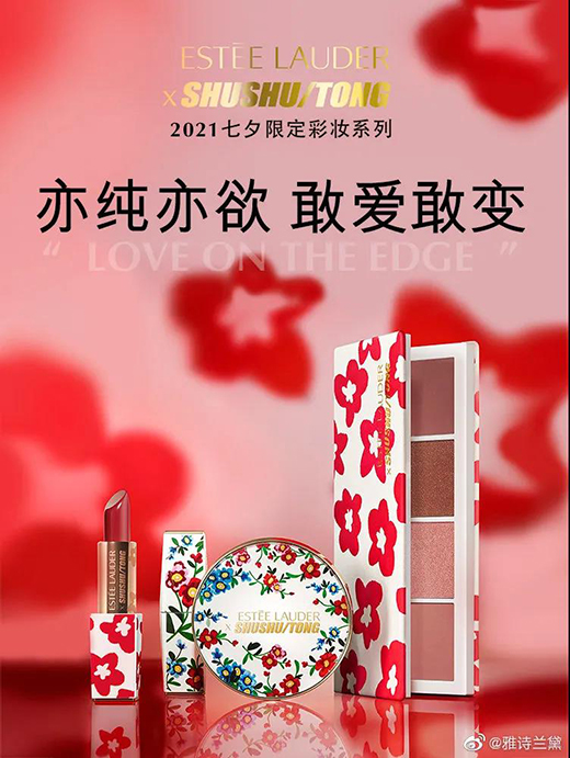 雅詩(shī)蘭黛在今年的七夕推出了聯(lián)名合作款,與國(guó)內(nèi)最炙手可熱的獨(dú)立設(shè)計(jì)師品牌shushutong合作,打造七夕限定妝容。3款明星單品遇見SHUSHUTONG經(jīng)典花朵圖案,以其俏皮不羈的風(fēng)格,盛贊果敢多變的女性魅力。