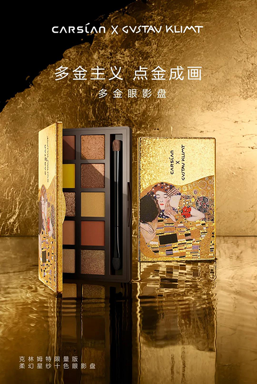 2020年,卡姿蘭大膽玩妝,跨界奧地利“黃金畫家”克林姆特,以其經(jīng)典畫作《The Kiss》為靈感,推出克林姆特限量版多金眼影盤,為消費者打造獨一無二的眼妝黃金時代。