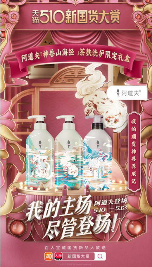今年,阿道夫開啟在國潮領(lǐng)域的首次探索,在本次天貓510新國貨大賞期間,推出了阿道夫【神獸山海經(jīng)】茶麩洗護(hù)限定禮盒。在天貓公布的“百大寶藏國貨新品”中,阿道夫【神獸山海經(jīng)】茶麩洗護(hù)限定禮盒被評為“文化新ICOIN”阿道夫?qū)F(xiàn)代萌趣與傳統(tǒng)文化完美融合,演繹獨(dú)特個性的新國潮風(fēng)格,在年輕一代消費(fèi)群體中引發(fā)追捧,在“全民國潮”時代走出了自己的特色路子。