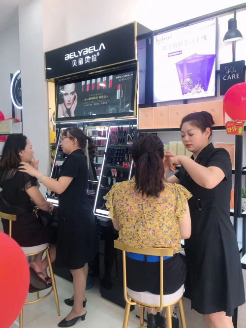 做顏值生意,當(dāng)然要有高顏值空間,百黛天嬌首先在裝修設(shè)計(jì)上做了創(chuàng)新,通過大面積試用區(qū)域、明亮愉悅色彩、無導(dǎo)購銷售模式的運(yùn)用,打造開放式購物場景,讓消費(fèi)者輕松自如邊試邊逛。