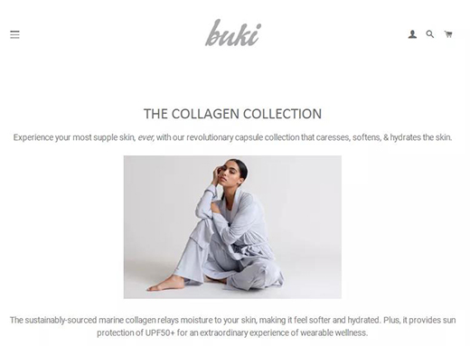 2018年,自詡“生產(chǎn)世界上最舒服衣服”的品牌Buki,推出了膠原蛋白家居系列衣物,包括帽衫、休閑褲、吊帶背心和高領(lǐng)毛衣,均采用膠原蛋白纖維制成。