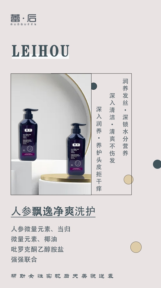 據(jù)近幾年我國脫發(fā)情況分析,我國目前脫發(fā)人口越來越呈現(xiàn)年輕化,25歲以下年輕人脫發(fā)的比例越來越大,當(dāng)然不只是脫發(fā),現(xiàn)代年輕人也普遍存在頭發(fā)干燥易癢,頭皮屑多,發(fā)絲易斷,干枯毛躁,愛出油等問題,于是各種洗護(hù)產(chǎn)品也開始層出不窮,魚龍混雜的產(chǎn)品里,怎樣選擇一款真正有效解決頭皮問題的產(chǎn)品,就成了很多人的糾結(jié)所在,對于患有這些頭皮問題的你來說,選擇合適的洗護(hù)產(chǎn)品很重要!一些品牌也及時(shí)捕捉到了年輕人的生發(fā)需求,推出保持精華成分活性的安瓶,在防脫產(chǎn)品市場掀起一波安瓶熱潮。對于脫發(fā)焦慮患者來說,精致護(hù)發(fā)就包括頭皮護(hù)理、基礎(chǔ)洗護(hù)以及頭皮精華,而如何在眾多的防脫市場中將洗護(hù)產(chǎn)品做好做強(qiáng)是蕾后一直致力的事情。針對現(xiàn)代年輕人普遍存在的頭皮現(xiàn)象,蕾后推出了一款人參飄逸凈爽洗護(hù),多種有效成分,呵護(hù)你的頭皮健康。