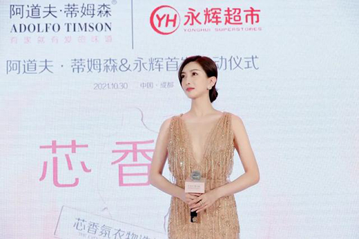 △阿道夫總裁李志珍、阿道夫·蒂姆森品牌代言人江疏影、總經(jīng)理劉洪、副總經(jīng)理吳瑞旺、四川永輝食品用品采購總監(jiān)姜遠(yuǎn)方、永輝清潔用品高級(jí)經(jīng)理姜靜等嘉賓及經(jīng)銷商代表,共同啟動(dòng)了阿道夫·蒂姆森芯香氛洗衣凝露新品首發(fā)儀式。