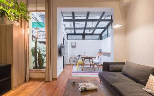 在玄關(guān)處,可以增加一些設(shè)計,比如用一道隔離柜隔開廚房與客廳之類的,然后利用墻壁空間切割出一個小空間,當作休閑空間。利用玄關(guān)、走廊、餐廳空間可以形成一個獨立空間,玻璃墻圍繞四周,在小空間里放上一張大大的榻榻米,米白色榻榻米與陽光、玻璃形成一處陽光房,隨時都可以到里面安靜地坐一會,思考。