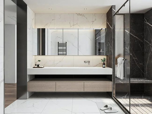 衛(wèi)生間干濕分區(qū)提高使用效率,洗漱區(qū)定制一款鏡柜,旁邊點(diǎn)綴嵌入型的燈帶,呈現(xiàn)出更別致的空間視覺(jué)效果,墻面分色設(shè)計(jì),現(xiàn)在奶茶色+黑色的結(jié)合,帶來(lái)令人賞心悅目的時(shí)髦。