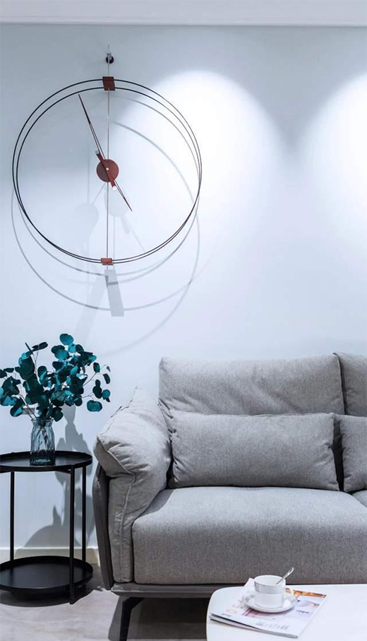 ▲沙發(fā)左邊擺放了黑色的小茶幾,花瓶加以裝飾,墻上是極簡風(fēng)的時(shí)鐘,簡單的搭配,文藝和精致感彰顯無疑。