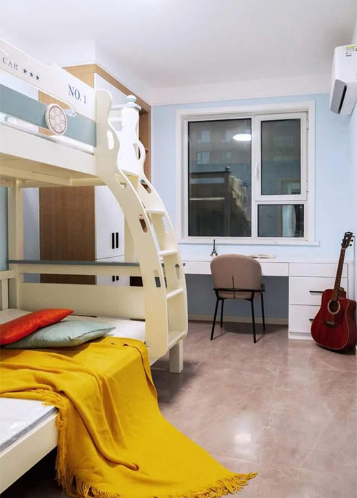 ▲上下床設(shè)計(jì),書桌與床之間加入衣柜,靠窗定制書桌,節(jié)省空間,實(shí)用性強(qiáng)。