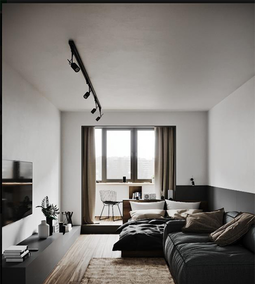 1、無(wú)主燈:就是不在客廳中央安裝造型碩大的燈具,只安裝小型筒燈射燈進(jìn)行照明,燈具主體隱藏在吊頂里,平日里看上去像沒(méi)有燈一樣,客廳頂面看上去更簡(jiǎn)潔,是近兩年開(kāi)始流行的一種客廳燈光設(shè)置方式。這樣設(shè)計(jì)的好處是新穎,頂面簡(jiǎn)約。