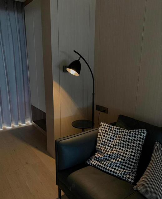 客廳氣質(zhì)低調(diào),以簡單的黑白木色,平衡了適合一家人生活的溫度。