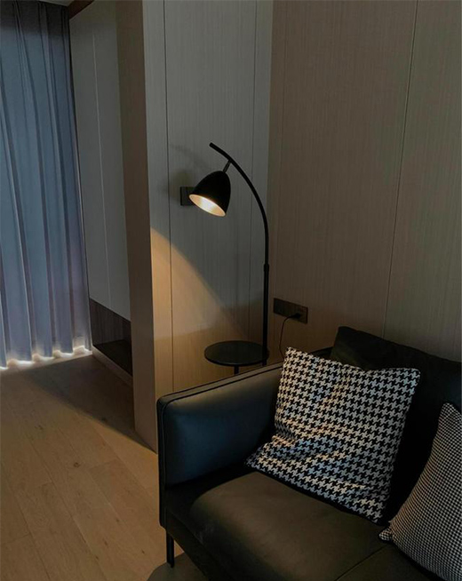 客廳搭配了北歐風真皮沙發(fā),高密度海綿坐感舒適,碳素鋼架腿防腐耐磨,線條干凈利落。