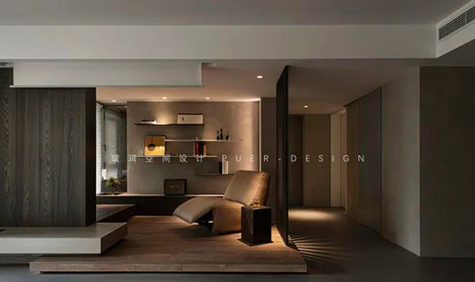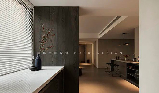 在當(dāng)代的極簡造型中,融入些許侘寂元素,構(gòu)建出一個內(nèi)斂沉靜的居室。