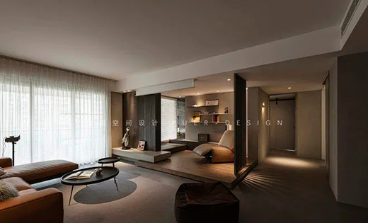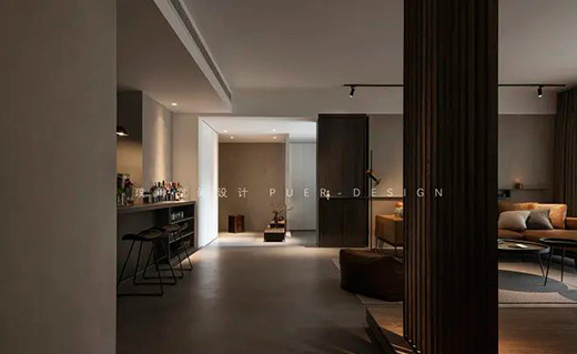 對本案的業(yè)主來說,家是相對自我的空間。夫妻二人希望在繁忙的工作結(jié)束后,可以獲得長效舒適的居家體驗,能夠真正放下浮躁,放逐自我:設(shè)計師摒棄了傳統(tǒng)的布置方式,在當(dāng)代的極簡造型中,融入些許侘寂元素,構(gòu)建出一個內(nèi)斂沉靜的居室。
