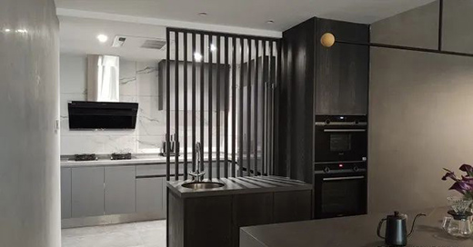 中廚和西廚以格柵分割,在外形成開放式廚房。