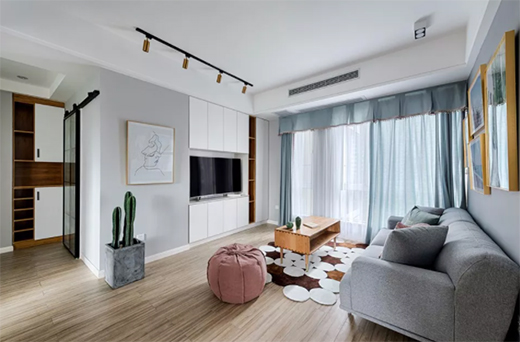 在傳統(tǒng)的客廳設計中,燈具一般是采用大體積的吊燈或吸頂燈,這樣的燈具安裝方式布線比較簡單,但是照明集中而不均勻,讓空間邊角顯得昏暗,而中間區(qū)域又過于明亮,因此出現(xiàn)了筒燈、導軌燈等這樣分布式的照明設計,讓空間照明更加均勻舒適。