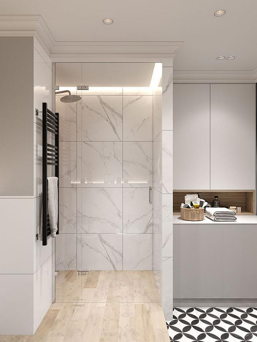 淋浴區(qū)加光源,仰頭不會(huì)直接刺眼、不被頂噴花灑擋住是關(guān)鍵。