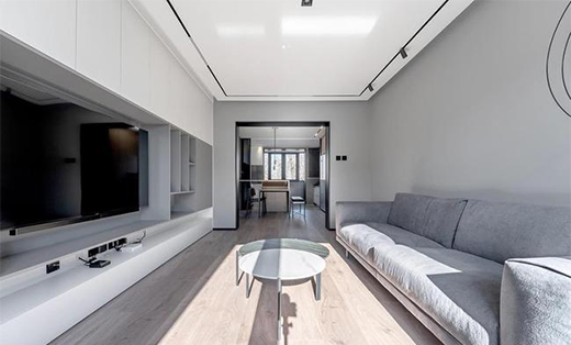客廳電視背景墻做了整年墻的電視柜,非常大氣豪華,電視柜依然是無把手的設(shè)計(jì),整體效果也是完整美觀,白灰色的搭配素雅清新,沙發(fā)背景墻和其他墻壁都是網(wǎng)紅灰,簡練美觀。無主燈設(shè)計(jì)讓客廳整體更加完整整潔。