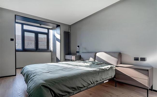主臥整體黑白灰的設(shè)計(jì),簡約時(shí)尚,陽臺設(shè)計(jì)了陽臺柜,彌補(bǔ)衣柜不足的遺憾。次臥設(shè)計(jì)成了多功能的房間,很有創(chuàng)意也很有時(shí)代感,靠窗放置雙人書桌,大人孩子同時(shí)使用,整面墻的儲物柜,依然無把手的柜門,其中最為有現(xiàn)代感的設(shè)計(jì)就是可折疊隱藏起來的床,確保空間寬敞的同時(shí),又保證了不用打地鋪,柜子旁邊的開放收納空間,正好就是一個(gè)床頭柜的設(shè)計(jì),很貼心很實(shí)用。