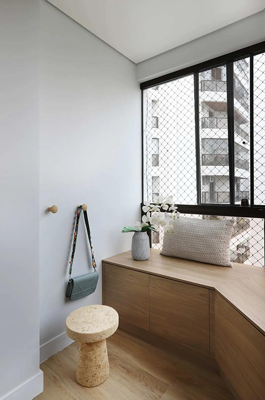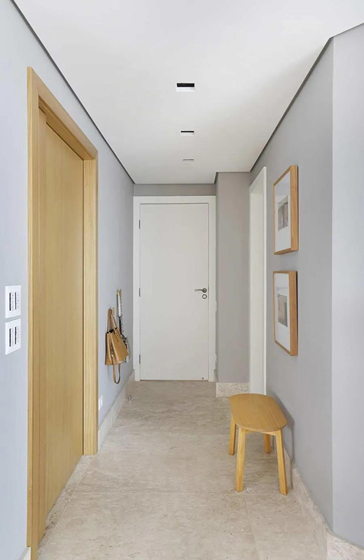 從玄關(guān)到室內(nèi)過渡的便是這過道區(qū)域了,空間也不能浪費(fèi),墻面搭配掛鉤,可以用來做掛放進(jìn)出門的包包和外套。