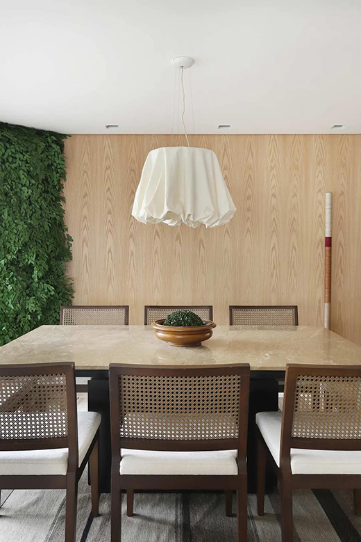 餐廳這一邊用木飾面和垂直綠植墻,營造沉穩(wěn)、簡約又不失大氣的氛圍。旁邊還連著打通的陽臺,看著養(yǎng)的花花草草,就餐心情更加愉悅~