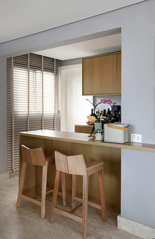 由墻面延伸出吧臺隔斷,劃分空間感。