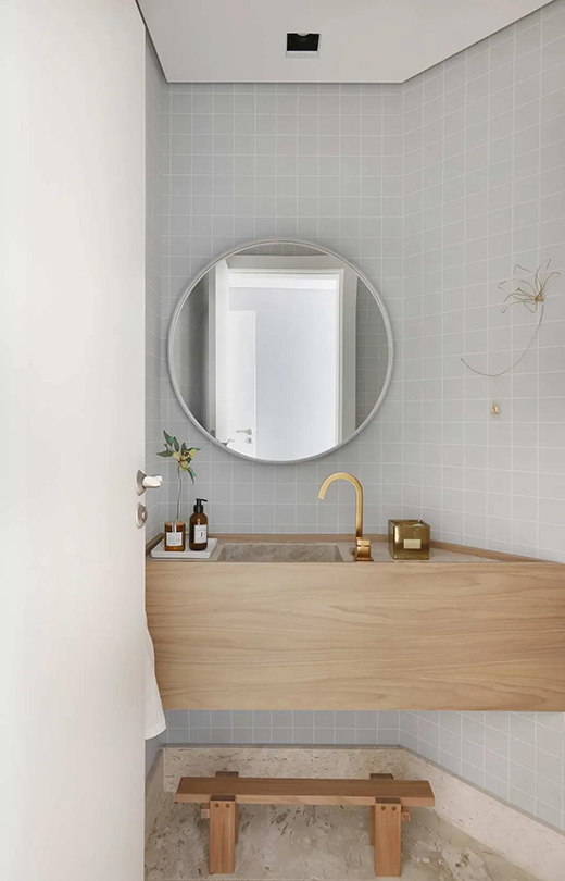 主衛(wèi)設(shè)計洗漱臺時,特意加長延伸臺面,可以用來擺放化妝、護(hù)膚用的瓶瓶罐罐,太實(shí)用啦!