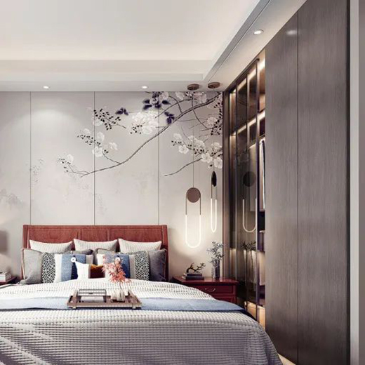 無(wú)主燈的吊燈一般指臥室床頭的線(xiàn)性吊燈,通過(guò)藝術(shù)的造型,提升臥室格調(diào)。